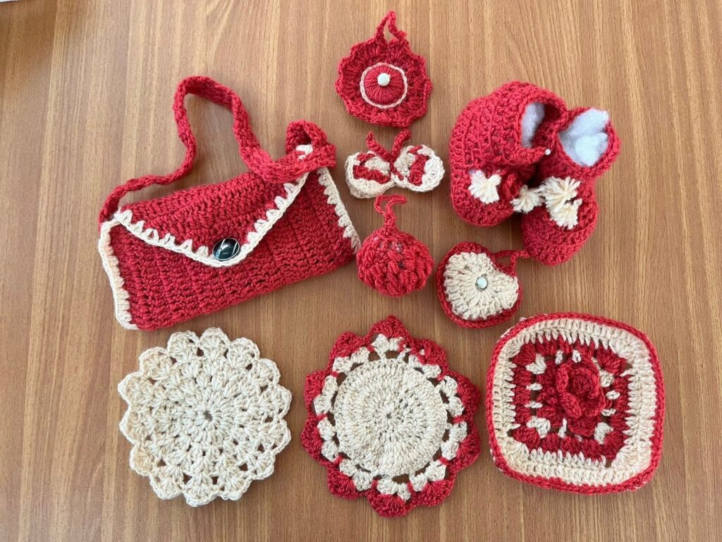تجمع المنتجات المعروضة بين الجانب الوظيفي والجمالي حيث تظهر أم عصام وهي تقوم بتعليم السيدات على كيفية صنع قطع الكروشيه من البداية بكيفية مسك السنارة الى ادخال الخيط وختاماُ بقطعة صوف فريدة من نوعها