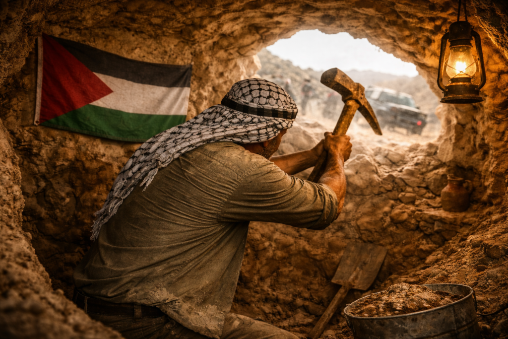 محمد، الذي كان يعتمد على العمل في الداخل الفلسطيني، قرر ألا يستسلم للبطالة أو لسياسات التضييق والمصادرة التي طالت أراضي بلدته في عام 2025، فبدأ رحلة فريدة في باطن الأرض، حفر خلالها مغارة يدوية لتكون ملاذاً ورمزاً للبقاء.